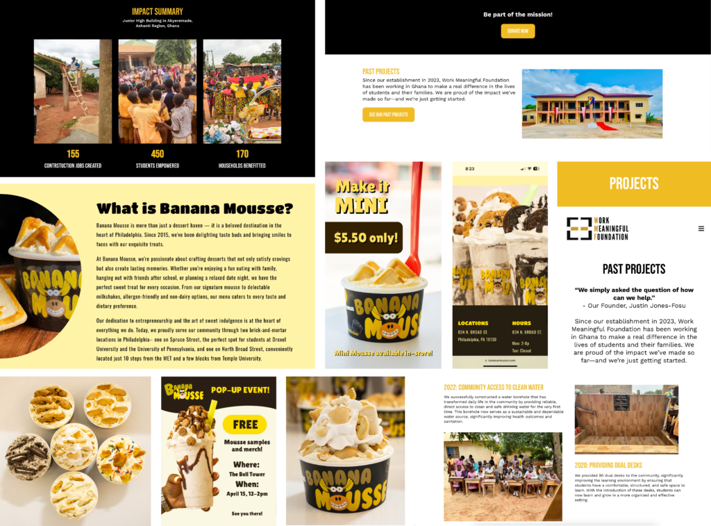 Managing all stages of a semester-long website design project for non-profit organization Work Meaningful Foundation, including client communication, layout redesign, brand storytelling, and SEO improvements
